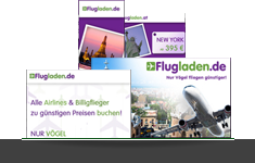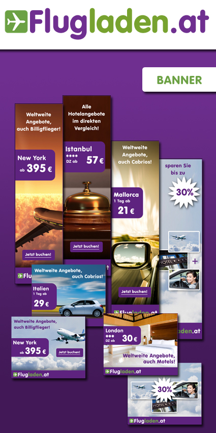 (Skyscraper, Medium Rectangle, Leaderboard, etc.). Die Werbemittel wurden ohne Vorgaben jedoch mit bestehenden Preislisten entwickelt und zeigen verschiedene Angebote von flugladen.at.