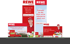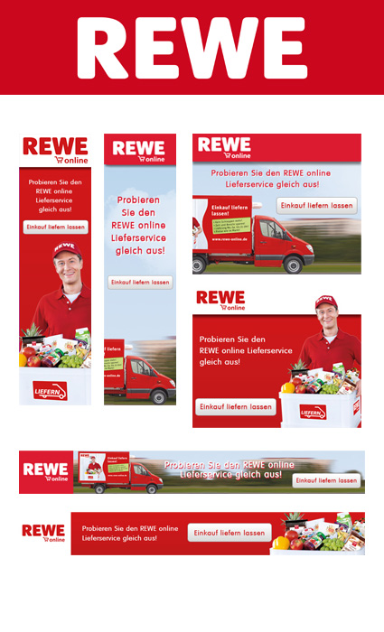 (Skyscraper, Medium Rectangle, Leaderboard, etc.). Die Werbemittel wurden ohne Vorgaben von mir entwickelt und bewerben den REWE-Lieferservice.