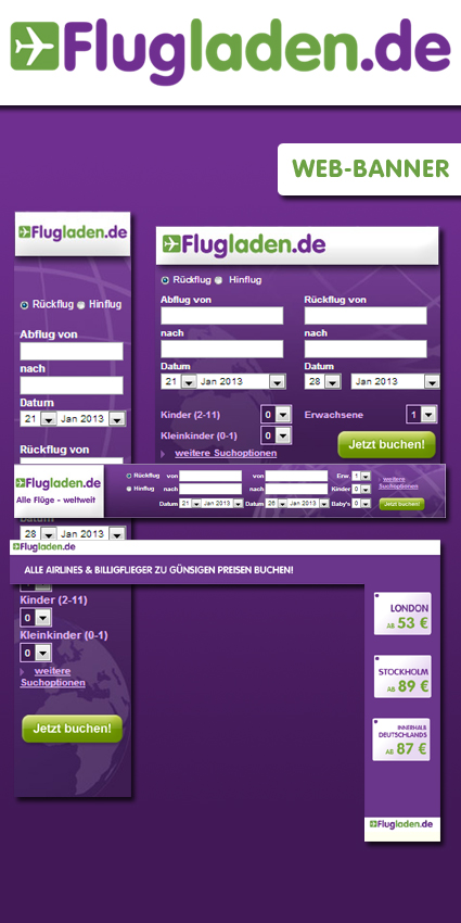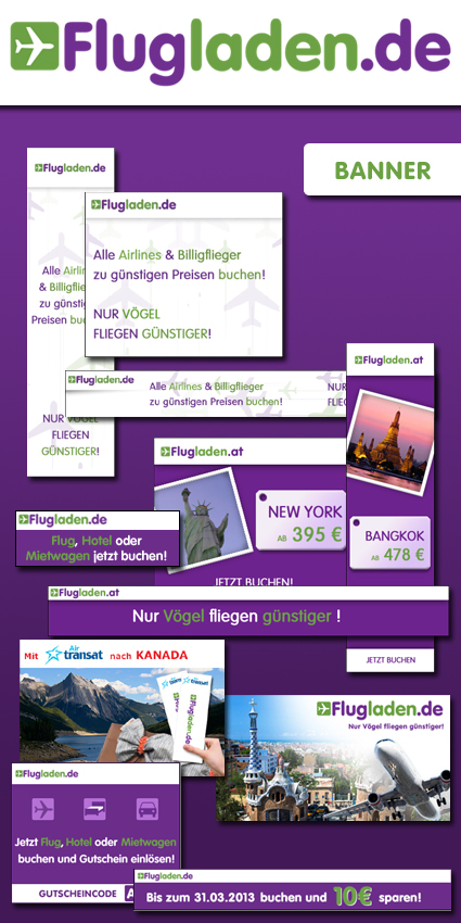 (Skyscraper, Medium Rectangle, Leaderboard, etc.). Die Werbemittel wurden ohne Vorgaben jedoch mit bestehenden Preislisten entwickelt und zeigen verschiedene Angebote von flugladen.de.